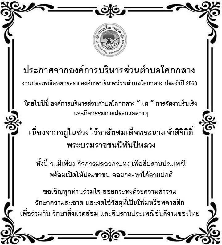 ประกาศองค์การบริหารส่วนตำบลโคกกลาง เรื่อง งานประเพณีลอยกระทง